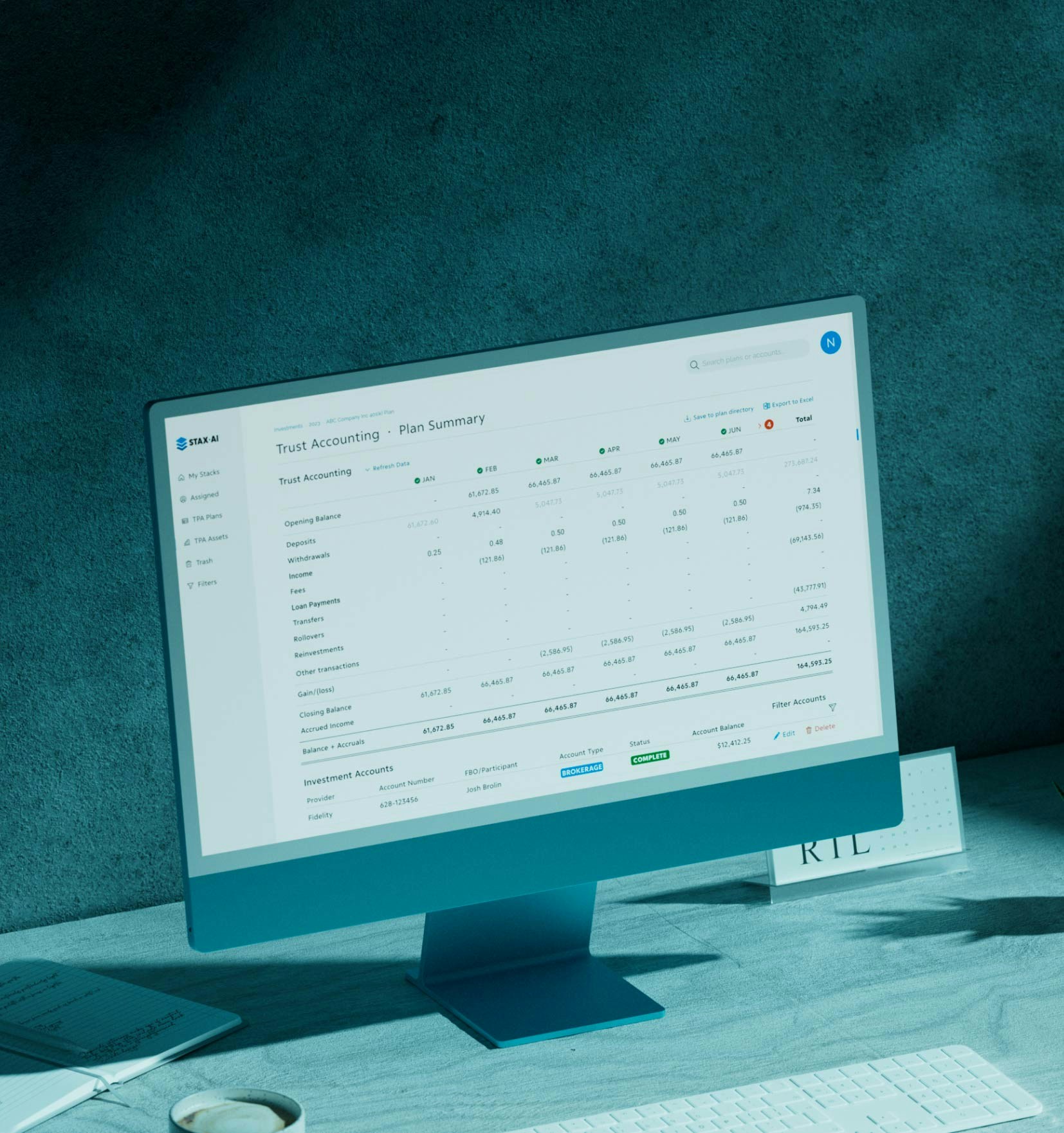 Stax.ai is the AI-powered operating system for independent retirement plan consultants (TPAs). We believe TPAs should focus on what matters most—building trusted client relationships and delivering outcomes—not pushing paper. That’s why we built a platform that unifies payroll, census, trust accounting, compliance, and client communications into one seamless experience.