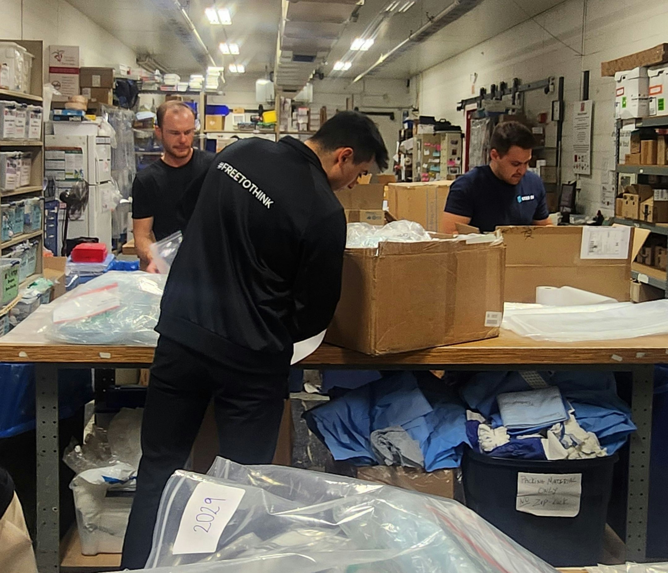At the beginning of March, Stax.AI had the privilege of sending seven employees to volunteer at the Tempe distribution center. Upon arrival, we were greeted by a large facility filled with boxes, crates, medical equipment, and various supplies. Our task for the day was to sort through several pallets stacked high with boxes filled with an assortment of donated medical supplies.