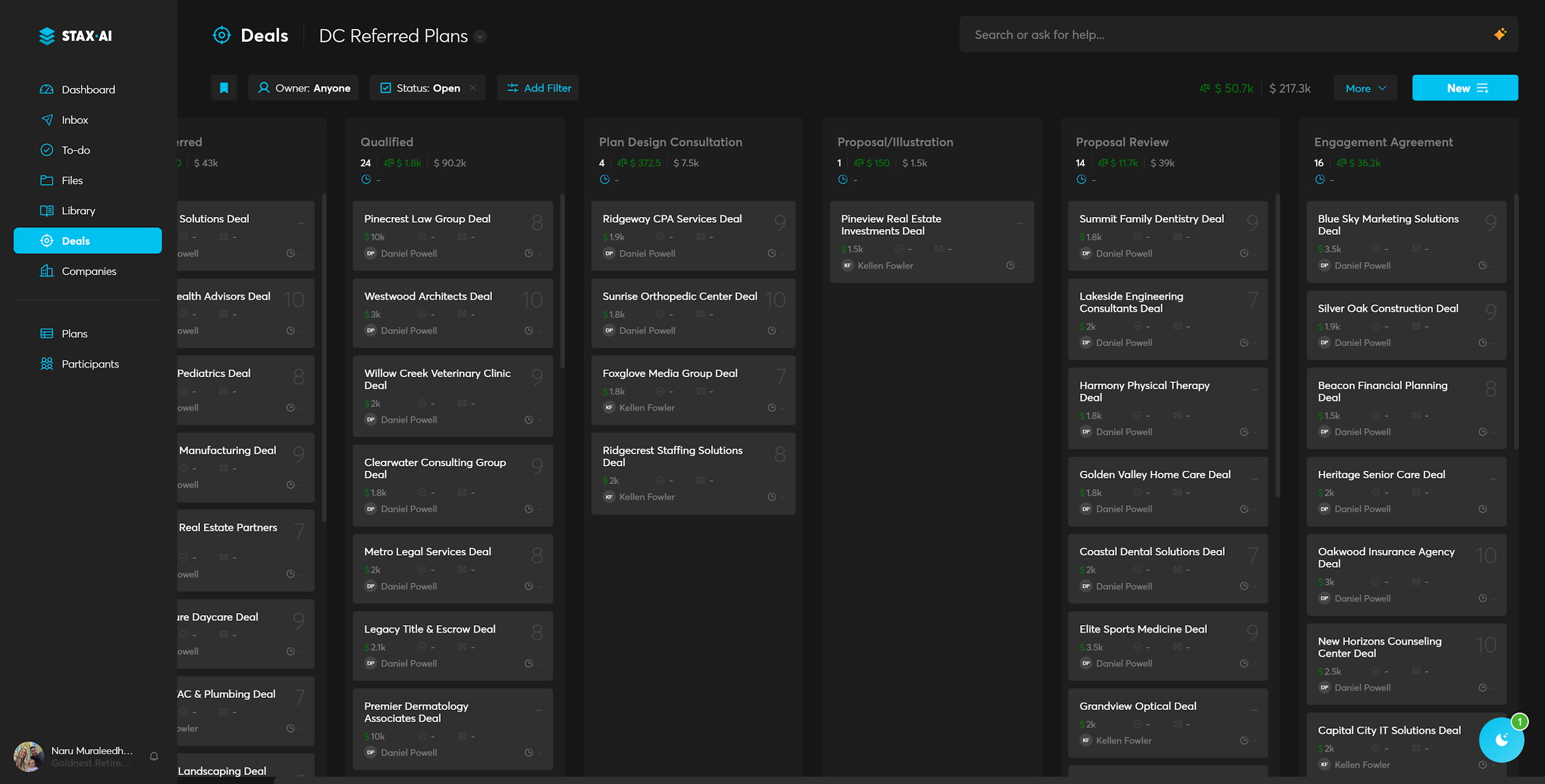 The Deals section in Stax.ai CX serves as a structured pipeline to track every plan-sponsor opportunity. TPAs can assign tasks, automate follow-ups, and move deals through stages seamlessly. With built-in reminders and progress tracking, no deal slips through the cracks.